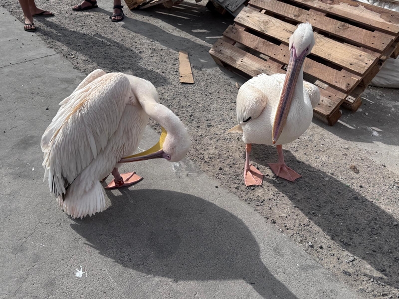 Uno de los pelícanos tenía colocado en una de sus patas una tira identificativa de algún tipo de control de estos animales, a los que se les estaría haciendo un seguimiento por parte de organismos oficiales.