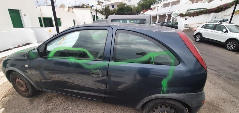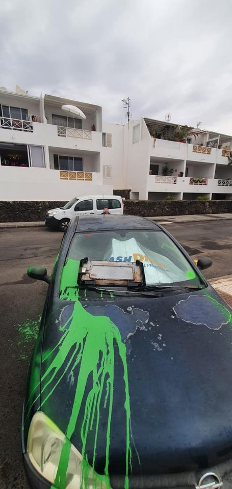 El concejal de Coalición Canaria, Amado Vizcaíno, denuncia en sus redes sociales las pintadas vandálicas que han realizado en el coche de su pareja, cubriéndolo de pintura verde.