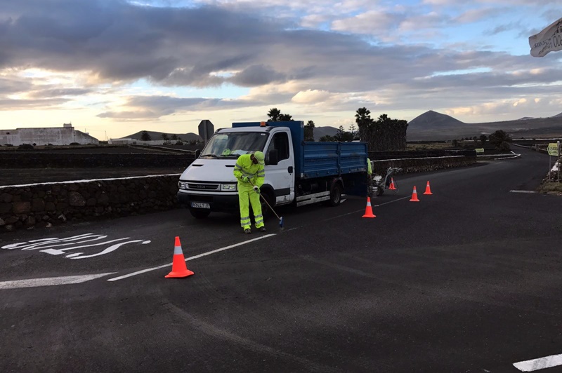 Pintan al completo las señales de tráfico que estaban "a medias" en Teguise