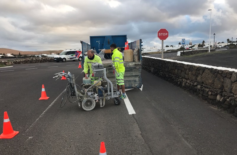 Canal Gestión ha cumplido. Como se comprometió con el concejal de Vías y Obras de Teguise, después de que éste presionara, este jueves por la mañana ha procedido al repintado completo de las señales de tráfico que quedaron a medio pintar en la calle Garajonay de La Villa.
