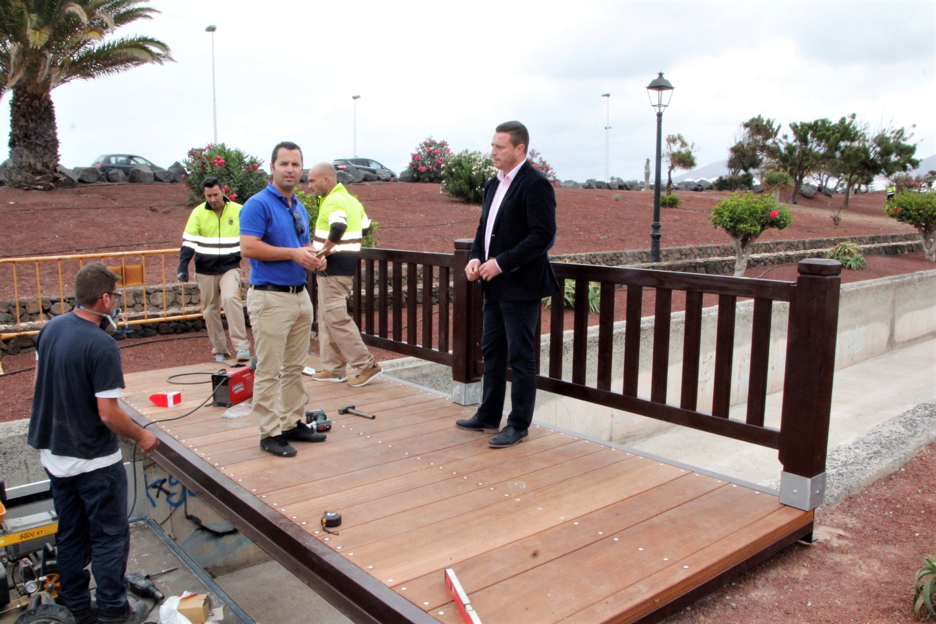 La pasarela instalada por el Ayuntamiento, asimismo acorta el camino de los escolares que se dirigen a diario a la parada de guaguas situada en las proximidades del barranco. El alcalde de Yaiza, Óscar Noda, y el concejal de Obras Públicas, Jonatan Lemes, comprobaron in situ el estado de la actuación municipal.