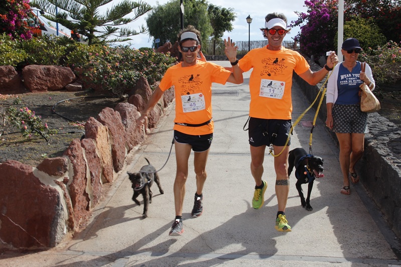 Fran se encariñó con la perra “y ella ya tampoco quiso irse”. Fran Godoy compartió podio con su entrenador, Alberto Peláez, ganador de distintas pruebas de larga distancia y montaña dentro y fuera de Lanzarote. Peláez participó al lado de su perra ‘Fivi’, que habitualmente lo acompaña en algunas jornadas de entrenamiento en Famara, mientras que Maikel Moreno, con su perra ‘Angie’, entró a meta como tercer clasificado, conformando así el cuadro de honor deportivo de PerRUNos, porque todos los inscritos son merecedores del reconocimiento de la organización.