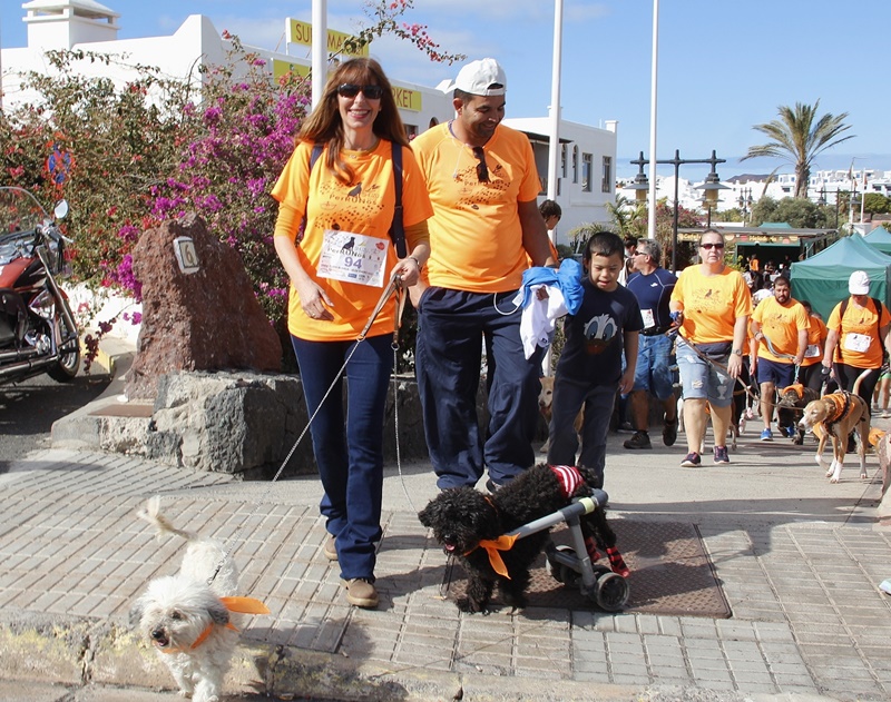 La práctica mayoría de deportistas corrieron o caminaron con una mascota, como los tres primeros de la general, pero también hubo inscritos que completaron el trayecto por montaña con dos mascotas. Es el caso de Mar Álvarez, vecina de Playa Blanca, que participó con ‘Sweet’ y ‘Coco’, este último perro de nueve años de edad y discapacitado desde los tres años por un accidente. Para ofrecerle una mejor calidad de vida a su can, Mar se las apañó construyéndole una silla de ruedas con tubos de pvc y ruedas de carritos de bebé que desde entonces le facilita su desplazamiento.