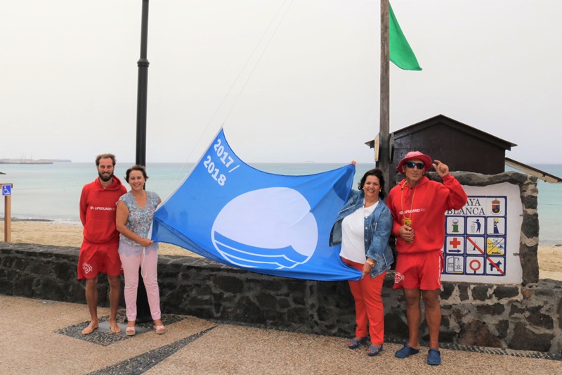La alcaldesa de Yaiza, Gladys Acuña, y la concejala de Turismo, Olga Caraballo, izaron las banderas 2017 – 2018 en la localidad turística de Playa Blanca y también lo hicieron en Puerto Calero acompañadas en este último por el presidente de Puerto Calero Marinas, José Calero Rodríguez, y el director de Operaciones de la marina, Constante Lorenzo.