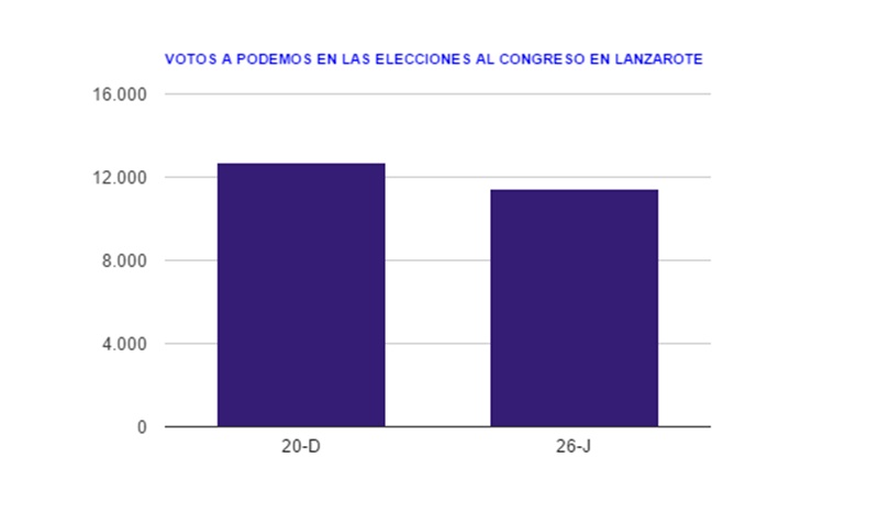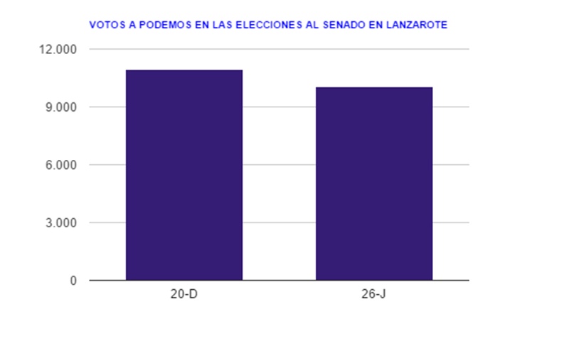 Las elecciones del domingo dejaron sin embargo unos resultados bien distintos. La formación morada perdió 1.299 votos al Congreso (10,2%) y 900 al Senado (8,22%), lo que le hizo caer a tercera posición. En Teguise, San Bartolomé y Yaiza consiguió situarse como segunda fuerza por detrás del PP en las elecciones al Congreso pero, entre los tres municipios, perdió En lo que respecta al Senado, aunque en los dos últimos municipios también consiguió ser la segunda fuerza más votada, en La Villa se situó como la cuarta.