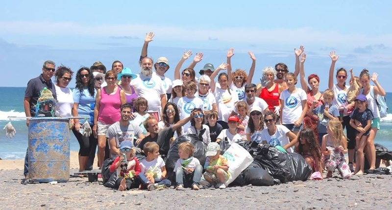 Una vez más, como todos los meses, los vecinos, residentes, muchos extranjeros, y familiares cercanos a La Caleta de Famara, se pusieron manos a la obra para recoger toda la basura acumulada en las últimas semanas en el entorno de la playa.
