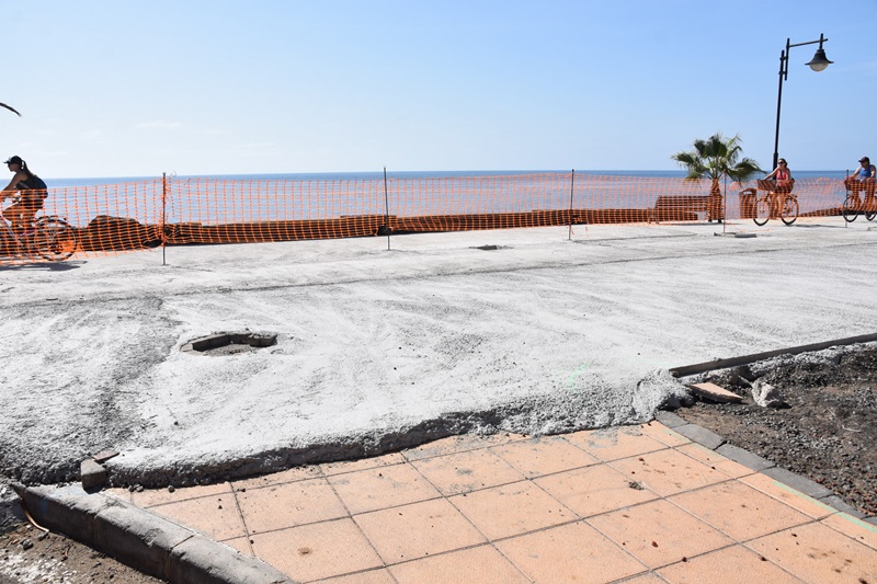 "El peligro de las inundaciones porque las casas están quedando más bajas que el paseo y además se trata de una zona transitada por cientos de personas. Hay un montón de problemas con las bicicletas y no se está haciendo un seguimiento de esta obra. También vemos en los diferentes accesos que han habilitado tanto para las playas como para cruzar de un lado a otro muchísimas baldosas y adoquines sueltos que están haciendo que muchas personas caigan al suelo", subraya Amado Vizcaino, concejal de CC en el Ayuntamiento de Tías.