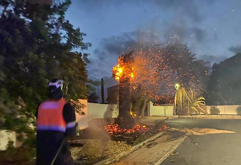 El Consorcio de Seguridad y Emergencias, se movilizó hacia la ubicación del incendio. Al llegar, junto con la presencia de la Policía Local, confirmaron que se trataba de un incendio en una palmera. Sin perder tiempo, los equipos de emergencia comenzaron las labores de extinción utilizando agua pulverizada y a chorro hasta que las llamas fueron completamente sofocadas.