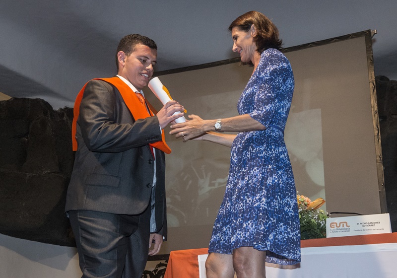 La consejera de Turismo, Cultura y Deportes del Gobierno de Canarias, María Teresa Lorenzo, resaltó la importancia de la formación y la educación de los profesionales del sector turístico en la entrega de orlas a los 44 alumnos de la VI Promoción de Graduados en Turismo en la Escuela Universitaria de Turismo de Lanzarote, que tuvo lugar en el Monumento al Campesino.