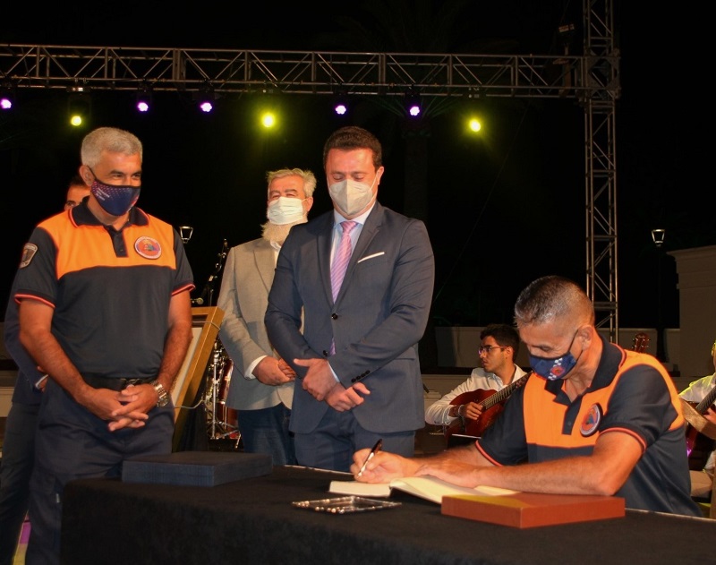 El acto solemne de entrega de la distinción tuvo lugar en La Plaza de la Alameda del pueblo de Yaiza en presencia de concejales de la Corporación de Yaiza, representantes públicos de distintas administraciones, autoridades militares y miembros de fuerzas y cuerpos de seguridad, y por supuesto, de los cuarenta voluntarios de Protección Civil encabezados por el jefe de la Agrupación, Ildefonso Noda, quien junto al subjefe accidental, Juan Carlos Páez, recibieron la Medalla de Oro y Pergamino por parte del alcalde, firmando además el Libro de Honores del Municipio.