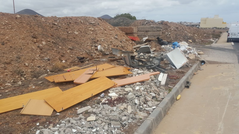 Un vecino del barrio de Argana Alta de Arrecife ha remitido unas fotografías a este medio, protestando por la cantidad de basura que hay acumulada al principio de la calle León Felipe, junto al lado de la Hyundai y la Renault.