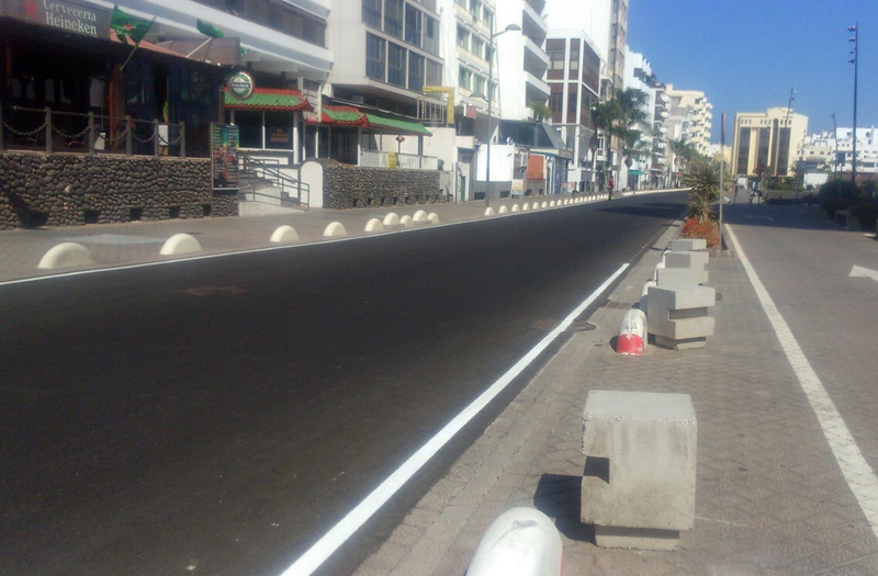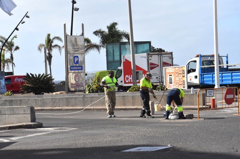 Operarios del Ayuntamiento de Arrecife pintaban este martes las marcas viales de la avenida marítima de Arrecife, aunque su apertura de forma semipeatonal "aún tardará unos días", según ha confirmado a Lancelot Digital el concejal de Urbanismo de Arrecife.
