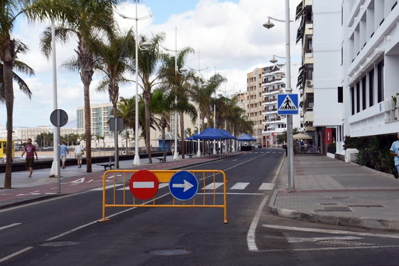 La Avenida Fred Olsen, en el tramo comprendido entre las intersecciones de las calles Valls de la Torre y Guenia, se ha cerrado al tráfico desde primer hora de este miércoles con motivo de la nueva edición del 'Mójate Arrecife' que se celebrará el sábado. Un corte que ha motivado las quejas de algunos ciudadanos, que no entienden porque se ha cerrado la vía con tanta antelación.