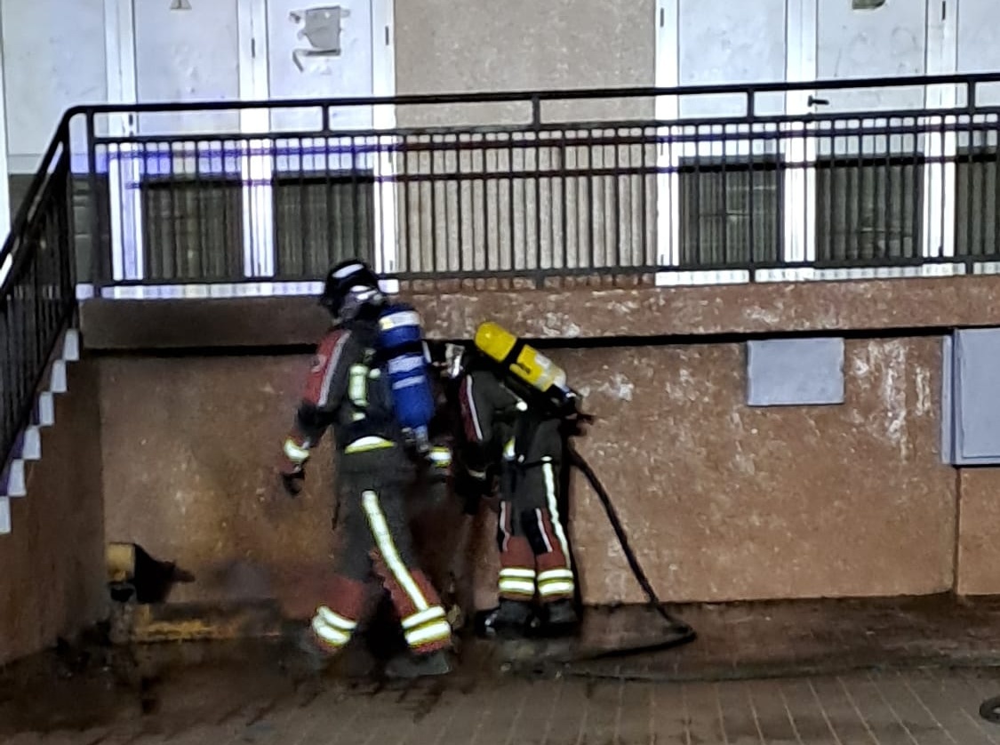 Alertados por un particular acudieron a sofocar un incendio en la calle Folías. Al llegar comprobaron que, efectivamente, se trataba de un sofá que ardía en un lateral del citado pabellón. Procedieron a sofocar el incendio con agua pulverizada hasta dar por finalizado el servicio.