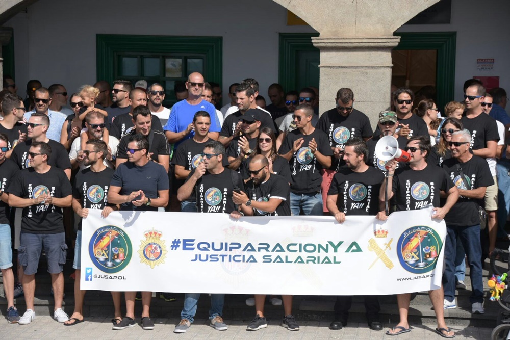 Más de un centenar de Policías Nacionales y Guardia Civiles se han concentrado a las puertas de la subdelegación del Gobierno en Lanzarote a la manifestación que se está desarrollando por todo el territorio estatal, en diferentes ciudades, reclamando que sus salarios se equiparen a los de otras fuerzas de seguridad autonómicas como los Mossos d'Equadra, que ganan hasta 600 euros más