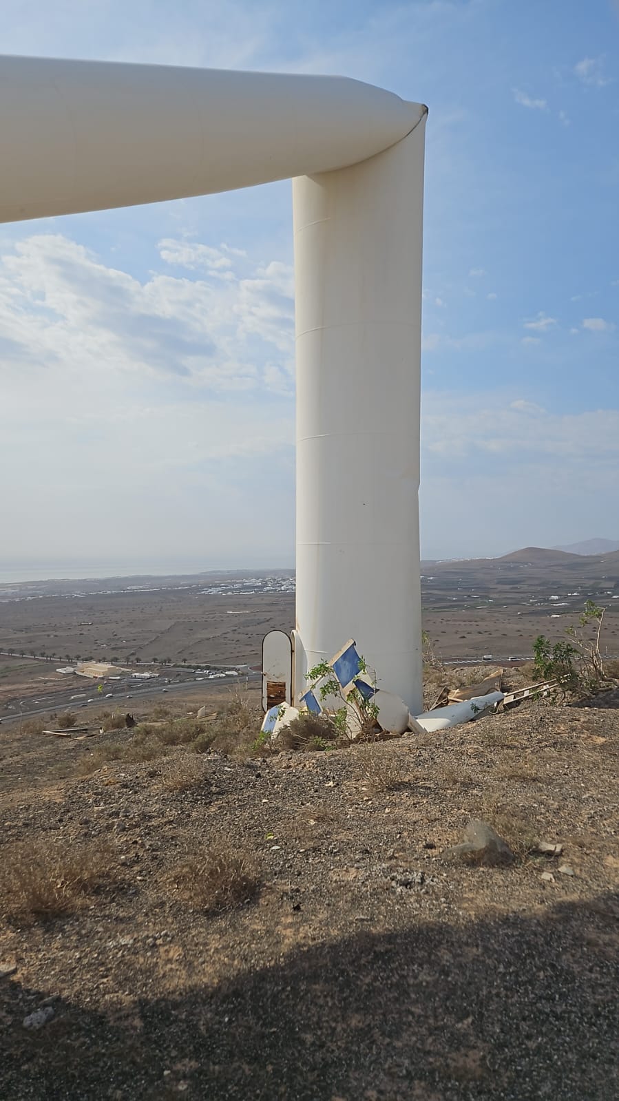 Minutos antes de las nueve de la mañana de este martes 16 de enero, caía parte de uno de los aerogeneradores sobre la línea de media tensión que suministra electricidad al Centro Emisor de Montaña Mina y a una parte de San Bartolomé y Arrecife.
