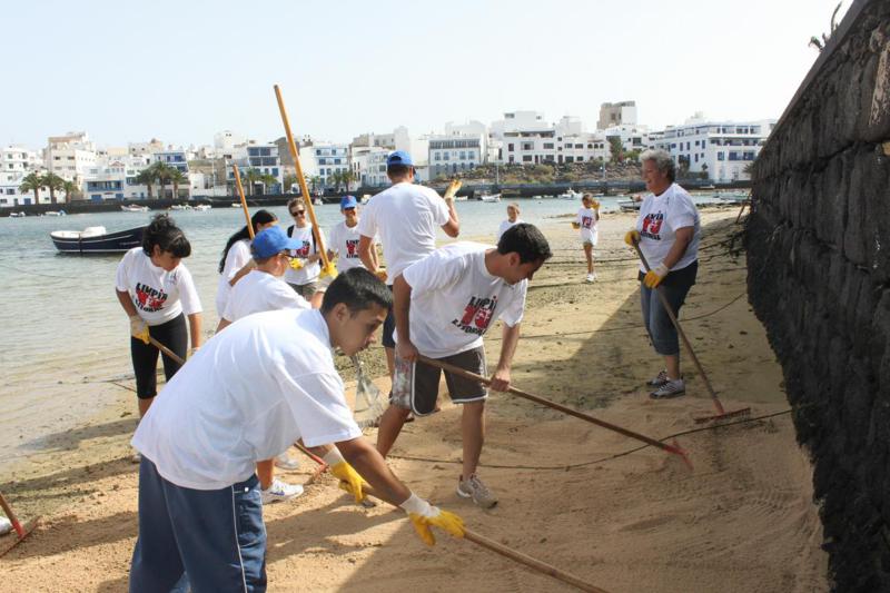 La jornada comenzó a las 8:30 de la mañana y los numerosos voluntarios, entre ellos muchos estudiantes que solicitaron, por las redes sociales facebook y tuenti y a través de la página web de la Concejalía de Juventud, la repetición de esta iniciativa municipal en época de vacaciones, recorrieron con la marea baja, la ribera del Charco de San Ginés, trasladándose a las distintas zonas de esta laguna arrecifeña para proceder a la colocación de piedras en muros y la limpieza de farolas, barandillas, callejones y muros con agua a presión.