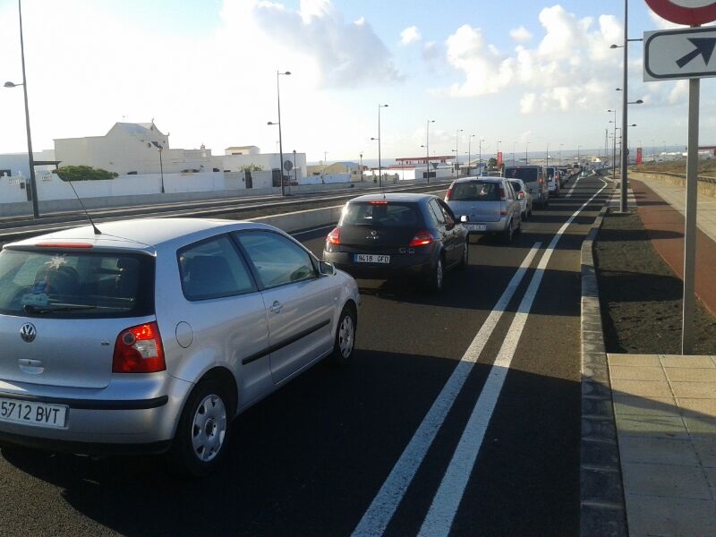 Con el carril extra del desvío de Tahíche, que comenzó a funcionar el pasado miércoles, se esperaba aliviar el tráfico y evitar en la mayor medida las retenciones pero, sin embargo, esto no se ha conseguido, pues especialmente desde las 7:45 hasta pocos minutos después de las 8 horas el tráfico se encontraba prácticamente parado en esta zona.