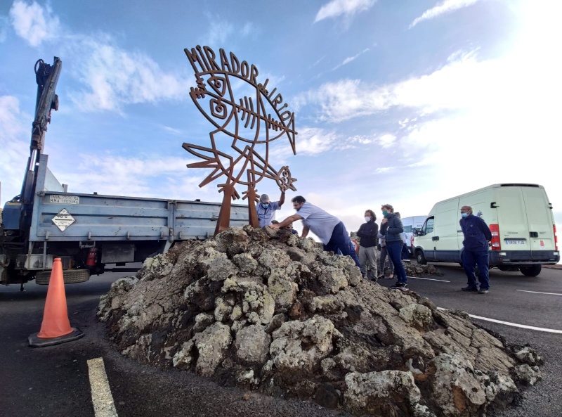 Forjada en hierro por los propios trabajadores de los Centros, la pieza es una réplica exacta elaborada con moldes de la estructura original creada por César Manrique que, como se recordará, se encontraba muy deteriorada y fue derribada por el fuerte temporal de viento que azotó la isla durante el pasado mes de diciembre.
