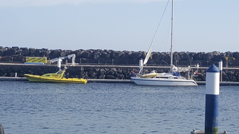 Los efectivos de Emergencias rescataban esta tarde, hacia las 17:41 minutos, a los tripulantes de una embarcación tipo catamarán con problemas en la vela y en el motor auxiliar, en Puerto del Carmen.