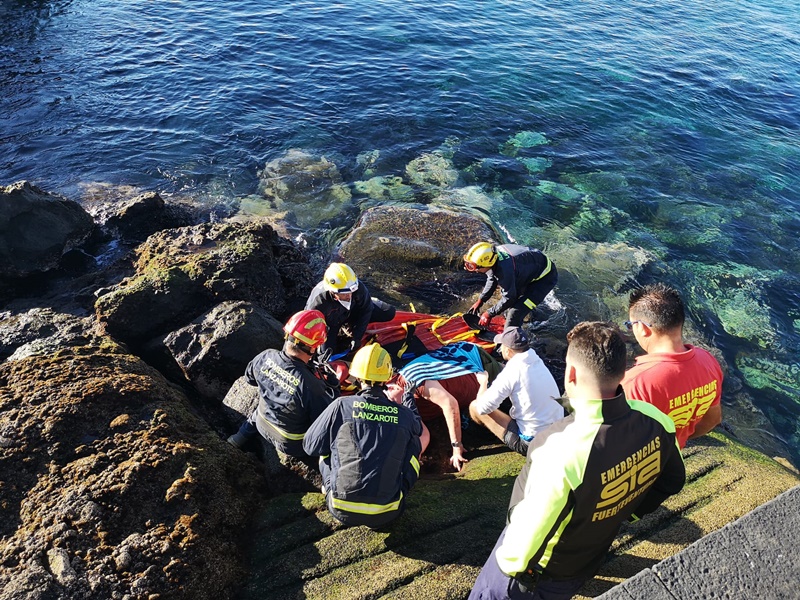 Los Bomberos rescataba hoy a las once a un hombre de 79 años, y nacionalidad alemana, que se había caído en la zona del Muelle Chico de Puerto del Carmen, Tías.