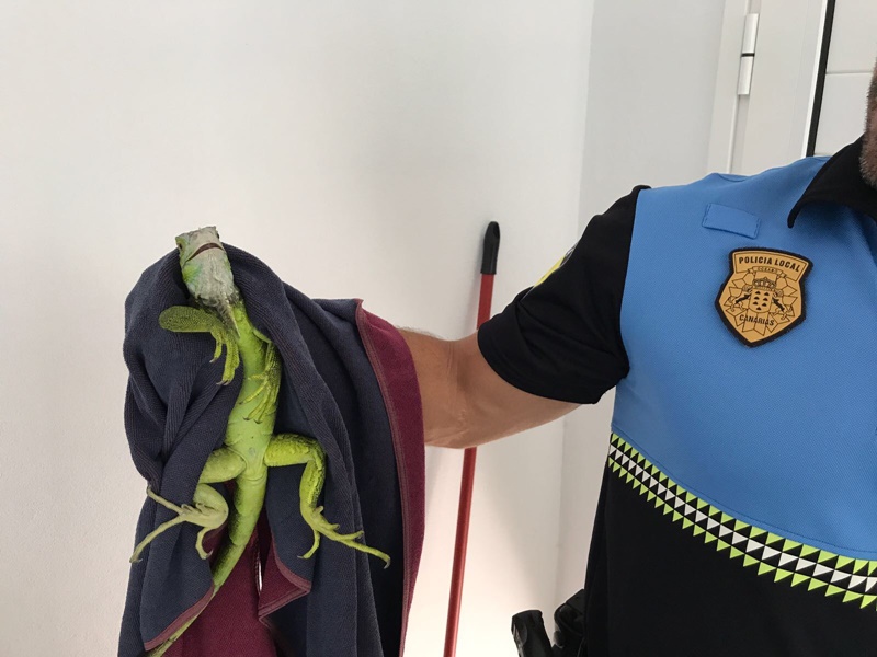 Un vecino de la zona de La Concha en Arrecife alertó a la policía local la tarde de este viernes de la presencia de una iguana en las inmediaciones de una urbanización. Los agentes de la Unidad de Protección Animal de Arrecife se personaron de inmediato en el lugar y la trasladaron al veterinario para examinarla y continuar con el proceso habitual en este tipo de rescate de animales exóticos, según ha informado el Ayuntamiento de Arrecife.