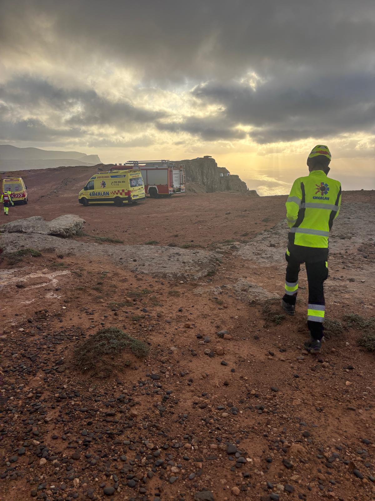 Estas imágenes fueron grabadas esta misma tarde en torno a las 18:30 horas en el norte de Lanzarote. El helicóptero tuvo que rescatar a un varón accidentado utilizando la camilla para poder llegar a él.