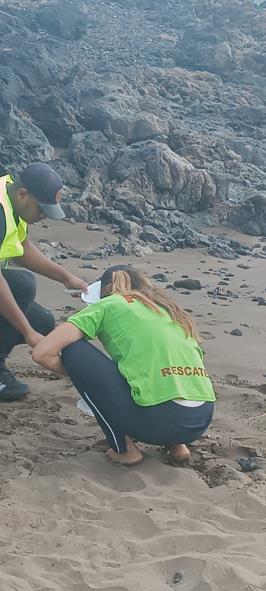En estos momentos, trabajadores de Medio Ambiente del Cabildo se desplazaron para analizar si eran las mismas bolitas del desastre ecológico que se ha dado en aguas próximas al país luso.