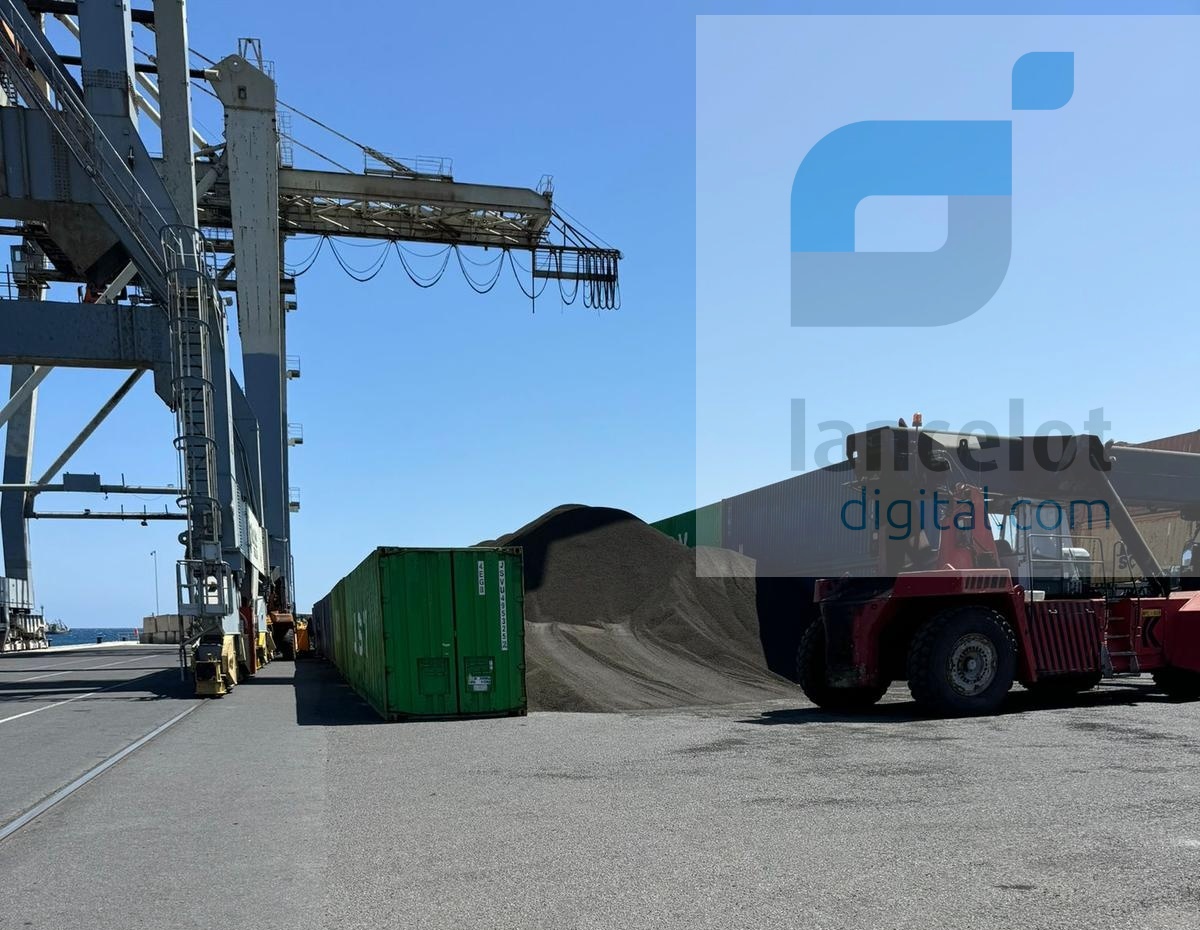 Una enorme montaña de rofe negro, también conocido como picón, se acumula actualmente en el Muelle de Contenedores de Los Mármoles, en Arrecife. Se estima que se trata de más de 3.000 toneladas de este material volcánico, altamente valorado en Lanzarote por su uso en el enarenado de fincas agrícolas y jardines.