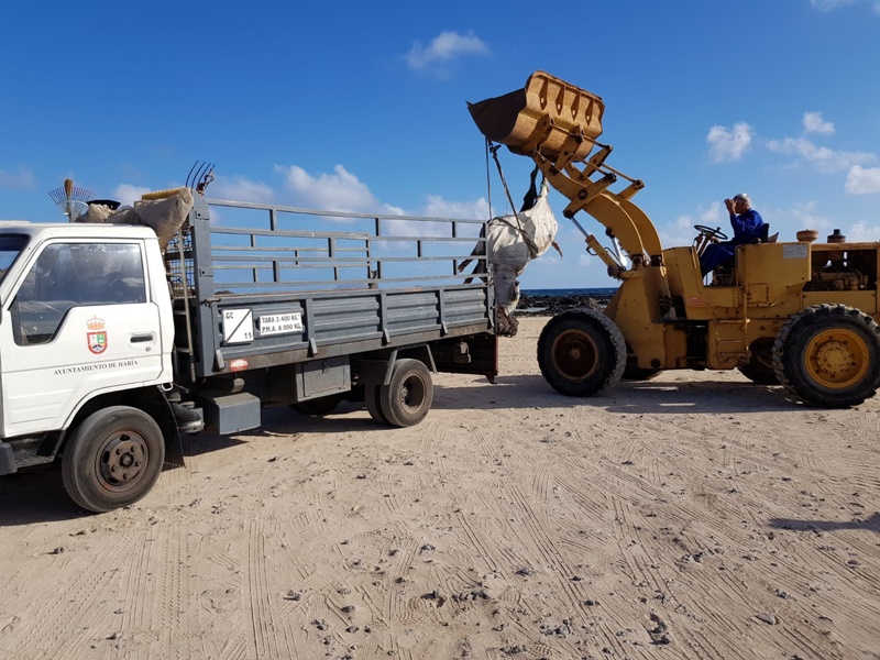 Operarios municipales del Ayuntamiento de Haría ha procedido en la mañana de este viernes a retirar el cadáver de una vaca que apareció en la zona de Caletón Blanco.