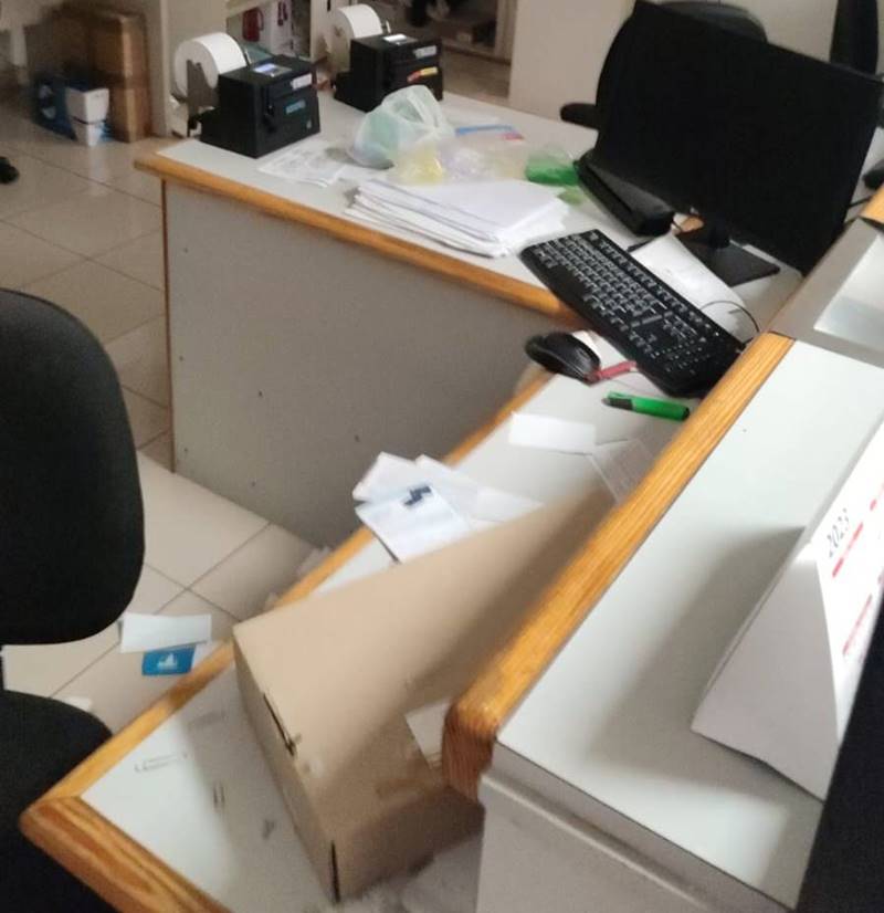 Como se puede observar en las imágenes, los "cacos" rebuscaron en todos los sitios posibles dentro de la oficina buscando posiblemente dinero, pero no tuvieron éxito, pues desde la compañía se afirma que no había dinero en la instalación.