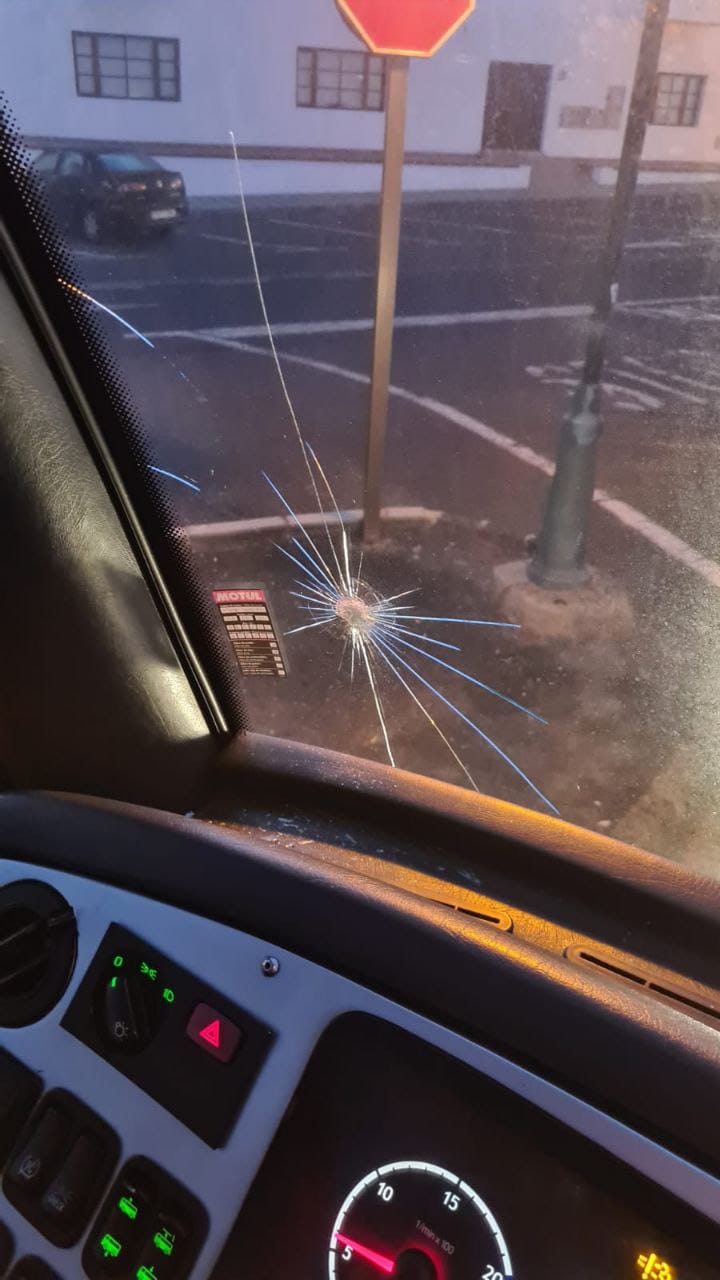 También este pasado fin de semana otra guagua de Lanzarote Bus sufría destrozos en la luna posiblemente realizados con un martillo, hechos que también ha sido denunciado a la Guardia Civil
