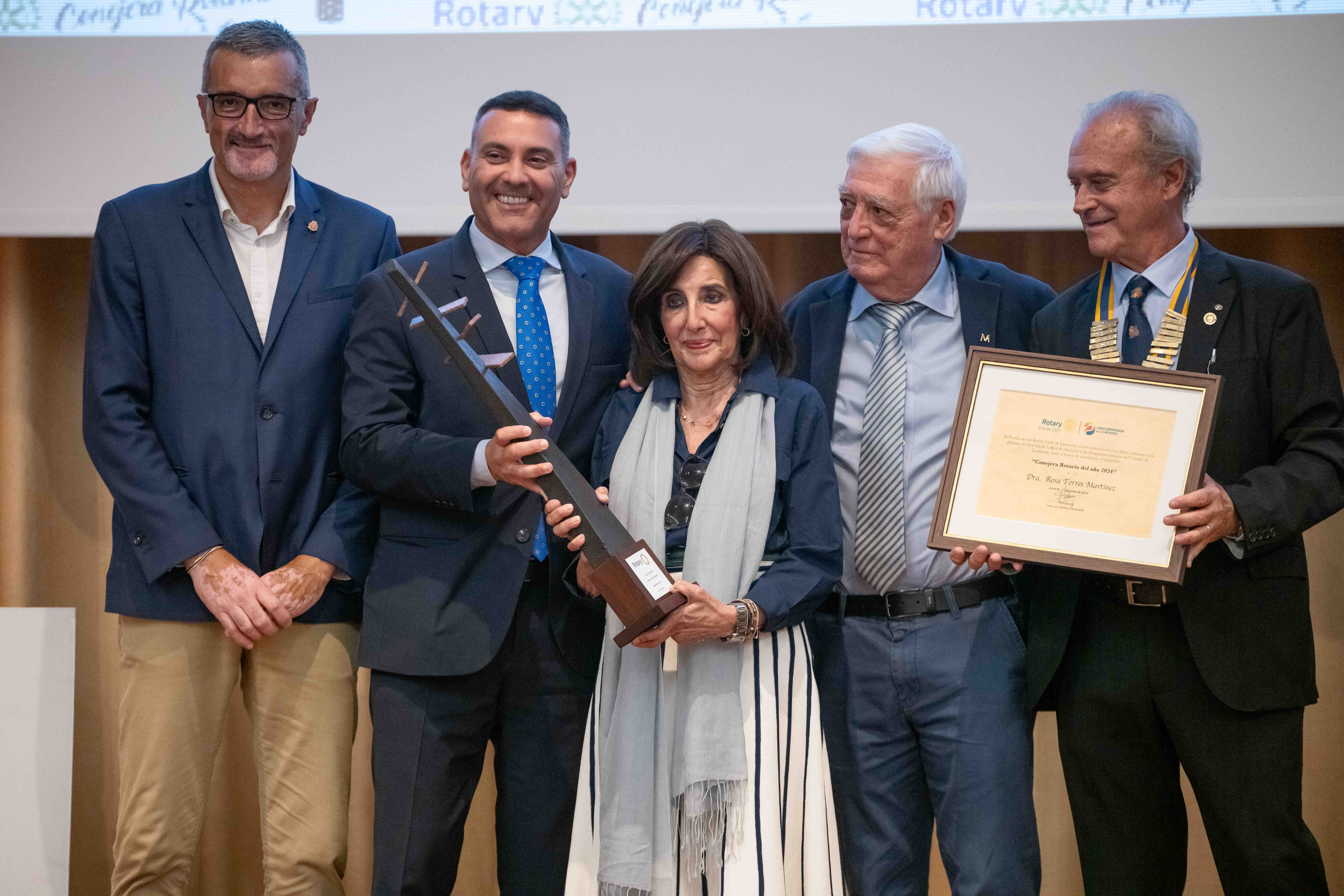 En una emotiva ceremonia celebrada en el Salón de Actos del Cabildo de Lanzarote, la doctora Rosa Torres Martínez fue galardonada con el prestigioso título de "Conejera Rotaria del Año 2024", reconocimiento que destaca su extraordinaria contribución a la lucha contra las adicciones en la isla y su incansable dedicación al bienestar de la comunidad.