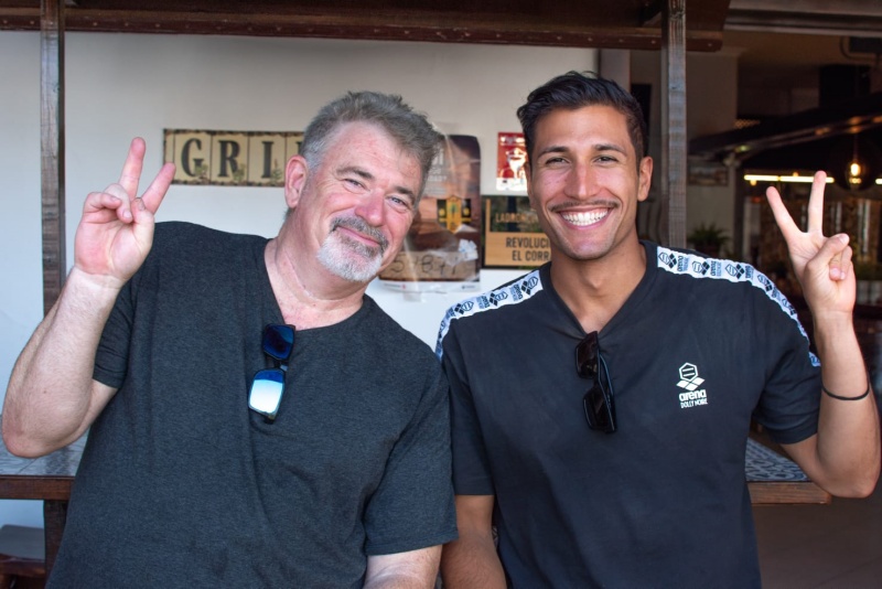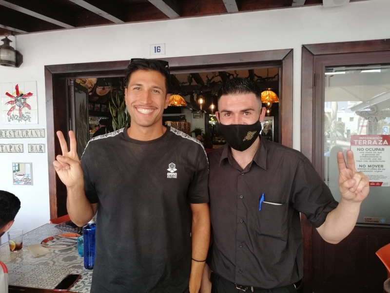 Otro famoso de la pequeña pantalla que ha visitado Lanzarote estos días es Gianmarco, concursante de la última edición de Gran Hermano. En este caso, en la imagen se le ve en una comida en el restaurante El Bocadito de Costa Teguise, con uno de los trabajadores y en la imagen de abajo con el dueño del establecimiento, Juan Domínguez.