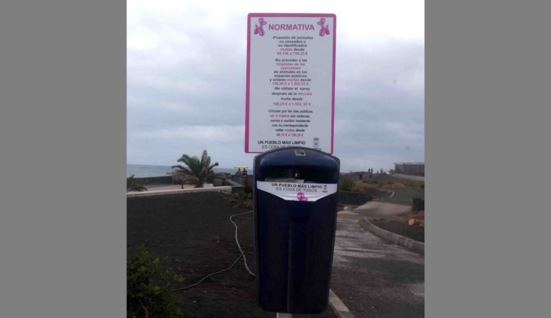 La normativa municipal actual por la que se regula la tenencia y protección de los animales en el municipio de San Bartolomé, prohíbe y sanciona el ensuciar la calle con los excrementos caninos y de ello se ha dejado constancia con los vinilos informativos colocados junto a las papeleras. Estos excrementos se consideran residuos urbanos (como los envases tetra-brick, la basura orgánica o el papel que usamos en nuestros hogares) y, como tal, su gestión corresponde a los ayuntamientos. El artículo 18 de la Ordenanza Municipal reguladora de la tenencia y protección de animales del Ayuntamiento de San Bartolomé establece que "Como medida higiénica ineludible, las personas que conduzcan perros procurarán impedir que estos depositen sus deyecciones en la vía pública, jardines, paseos y en general cualquier lugar destinado al tránsito. En el caso de que las deyecciones queden en las zonas antes citadas, la persona que conduzca el animal está obligada a su limpieza y a depositarla en lugares destinados a ello. Del incumplimiento de este precepto, serán responsables las personas que conduzcan los animales y subsidiariamente los propietarios de los mismos. Las multas por no recoger los excrementos pueden estar entre 150,26 y 1.502,53 euros.