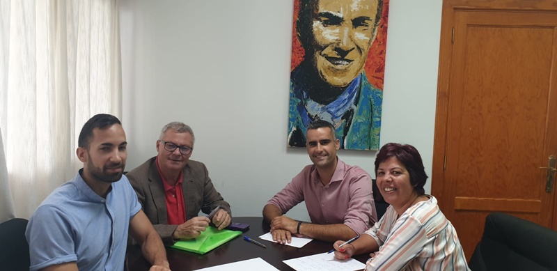 El alcalde de San Bartolomé, Alexis Tejera, acompañado por la concejal de Educación Alma María González, se reunió este jueves con Antonio Ojeda Domínguez, Jefe de Sección de Escuelas Taller, Talleres de Empleo y PFAE (Programas de Formación en Alternancia con el Empleo), del Servicio Canario de Empleo y técnicos del área.
