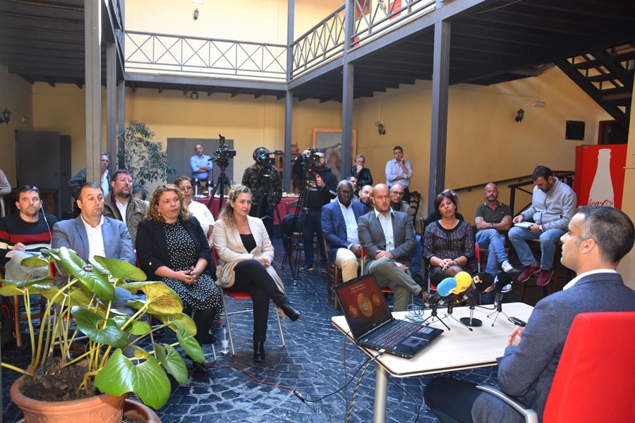 El alcalde de San Bartolomé, Alexis Tejera acompañado por el equipo de gobierno, presentó en la mañana de este jueves, en el patio del Teatro de San Bartolomé, tras seis meses de planificación, los principales proyectos y actuaciones que regirán la política municipal y líneas de gestión que van más allá de lo local.