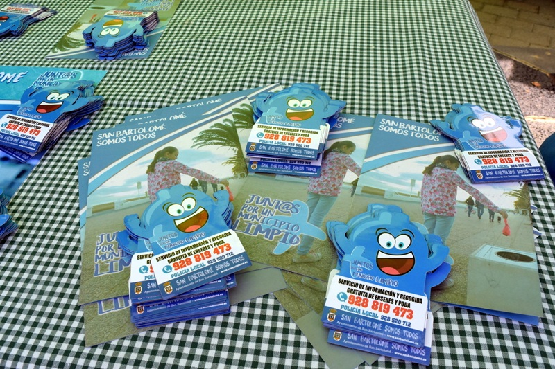La campaña de concienciación “San Bartolomé somos todos/as. Juntos/as por un municipio más limpio" cuenta con distinto material e imanes para la nevera, en los que se informa de los teléfonos de servicio de información y recogida gratuita de enseres 928819473 y el teléfono de la Policía Local 928520712, vinilos que se colocarán en 100 puntos diferentes del municipio, donde están ubicados contenedores y dípticos informativos que se entregarán en los buzones de la vecindad.