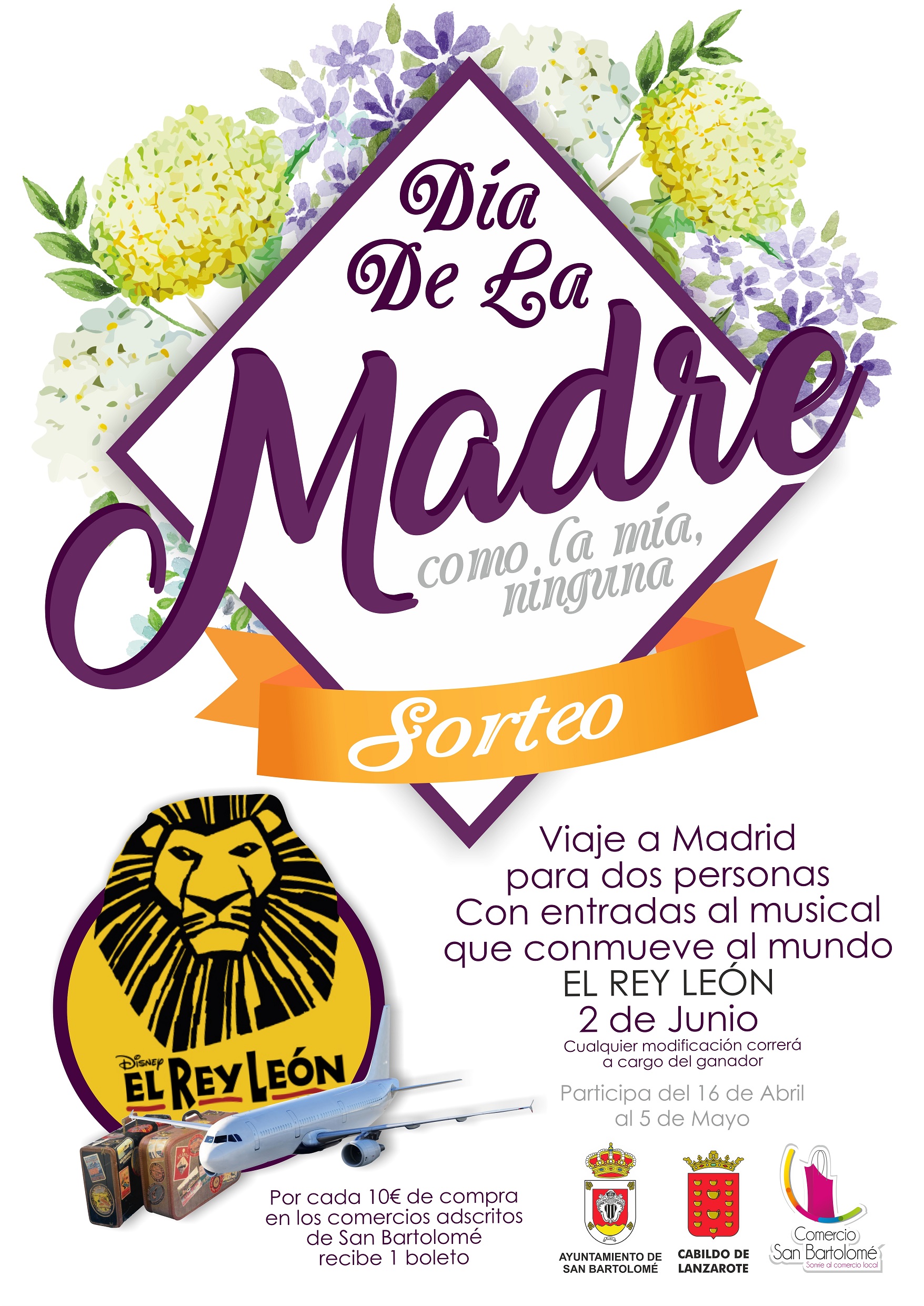 Por cada 10 euros de compra se obsequiará con un boleto, que una vez cumplimentado y colocado en la urna del propio establecimiento podrá dar la oportunidad de participar en un sorteo y llevarse alguno de los premios, que consisten en un viaje a Madrid para dos personas incluyendo billetes, alojamiento y entradas para el musical El Rey León para disfrutarlo el 2 de junio, un viaje a Gran Canaria para dos personas que incluye billetes, alojamiento y entradas para el concierto de Il Divo para disfrutar el fin de semana del 2 de junio, o un masaje cedido por Nereida Cedrés.