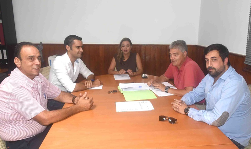 La Alcaldesa de San Bartolomé, María Dolores Corujo, recibió en la Casa Consistorial al Vicepresidente Primero del Cabildo y Consejero responsable de la Unidad de Coordinación de Proyectos, José Juan Cruz, y al Consejero de Vías y Obras, Andrés Stinga, para hacer un seguimiento y supervisión junto a los concejales de Urbanismo y Zona Industrial, David Rocío y Servicios Públicos y Vías y Obras, Alexis Tejera, de las distintas obras sujetas a convenios entre la primera institución municipal y la insular, dentro de los Planes de Cooperación de los años 2013/2014 y 2015 respectivamente.
