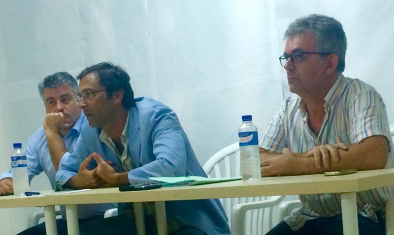 El presidente del Cabildo de Lanzarote, Pedro San Ginés, acompañado del secretario general de Coalición Canaria (CC) en Lanzarote, David De la Hoz, y del presidente del Comité Local de esta formación política en Yaiza, Ángel Domínguez, mantuvo una reunión la noche del pasado viernes en el local de la Asociación de Vecinos “La Aurora” de Playa Blanca con unos 70 vecinos residentes del Plan Parcial de Montaña Roja.