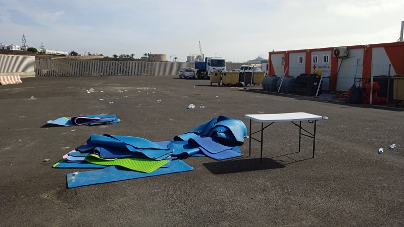 Hay que recordar que en una única jornada llegaron ocho embarcaciones y casi 400 personas, por lo que no había capacidad para acogerlos en las instalaciones oficialmente habilitadas para ello y hubo que improvisar un espacio para tal fin.