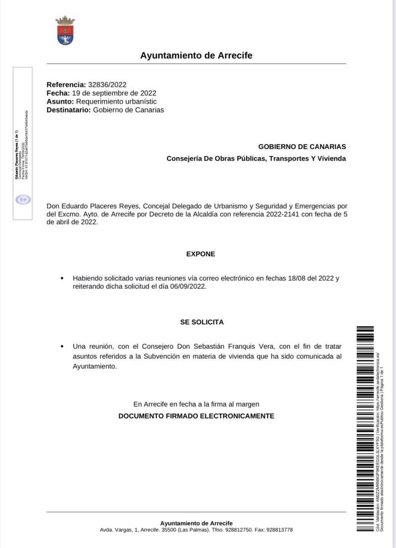 “Después de tres meses diciendo que el Ayuntamiento de Arrecife estaba entorpeciendo la solución al problema de las viviendas desalojadas en Titerroy, el consejero de Vivienda del Gobierno de Canarias, el socialista Sebastián Franquis, reconoce en sede parlamentaria que es "ahora" cuando ha encargado la redacción de los proyectos para la rehabilitación de los cinco inmuebles”, señalan en nota de prensa. “Y es que, aunque el gobierno diga que "lleva desde 2019 actuando para llevar a cabo la reforma y la rehabilitación de las viviendas", de todos es sabido que no fue hasta mayo de este año cuando Franquis y Dolores Corujo se reunieron con los vecinos para anunciarles que les iban a arreglar sus casas”.