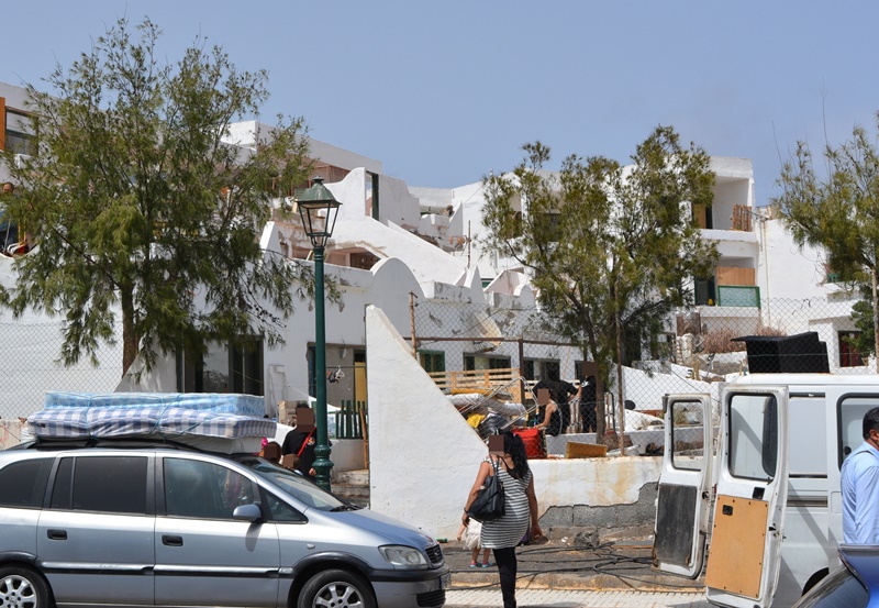 Los vecinos de Costa Teguise veían este miércoles con evidente satisfacción como se hacía realidad una noticia que llevaban tiempo esperando: el desalojo de los apartamentos Senator, conocidos en los últimos años por la presencia de okupas, que recientemente cambiaron de dueños y pudieron finalmente ser desalojados.