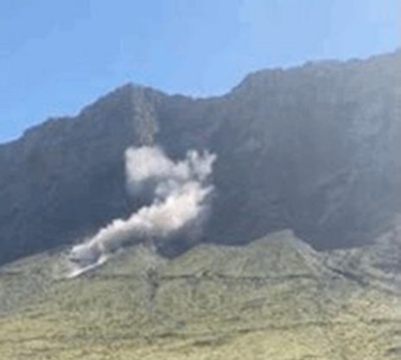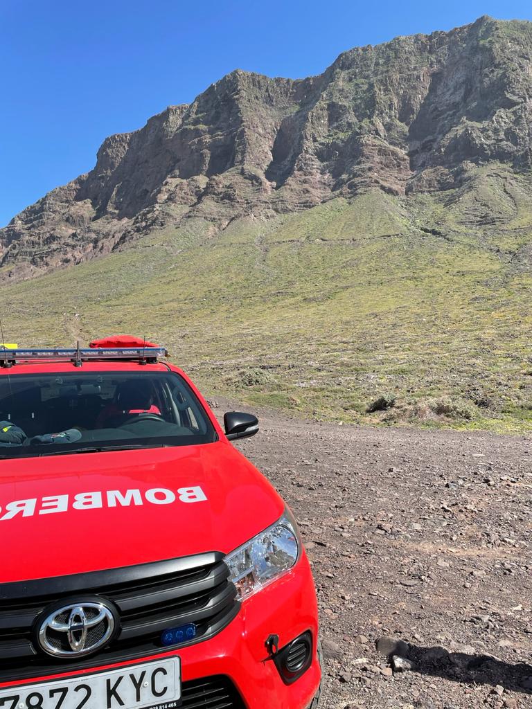 Los Bomberos colaboraban este martes con la Policía Local de Teguise en controlar un derrumbe producido en el Risco de Famara, concretamente en la zona conocida como El Papelillo.