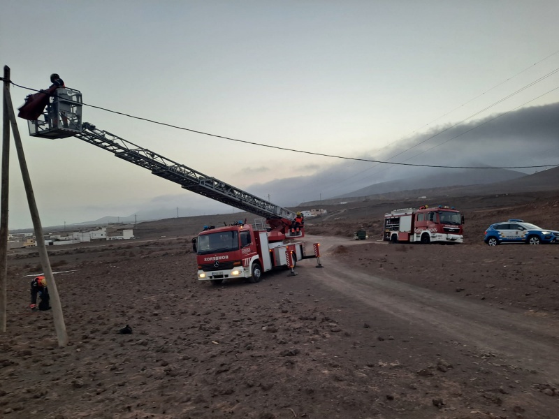 Poco después, fueron de nuevo alertados por el peligro que suponía un cable caído en la vía también en Argana Alta, aunque en esta ocasión en la calle Julio Cortazar.