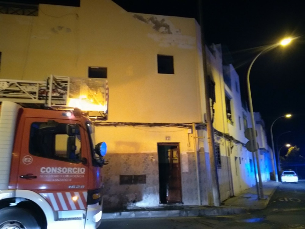Los bomberos del Consorcio de Seguridad extinguieron en la madrugada del martes al miércoles un incendio en una vivienda abandonada en la calle El Salvador de Arrecife.