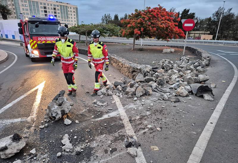 El coche derribó parte de un muro de piedra y causó un vertido de aceite que obligó a intervenir al Consorcio de Seguridad y Emergencias. Alertados por el CECOES, efectivos del Parque Central acudieron a la zona para limpiar la calzada.