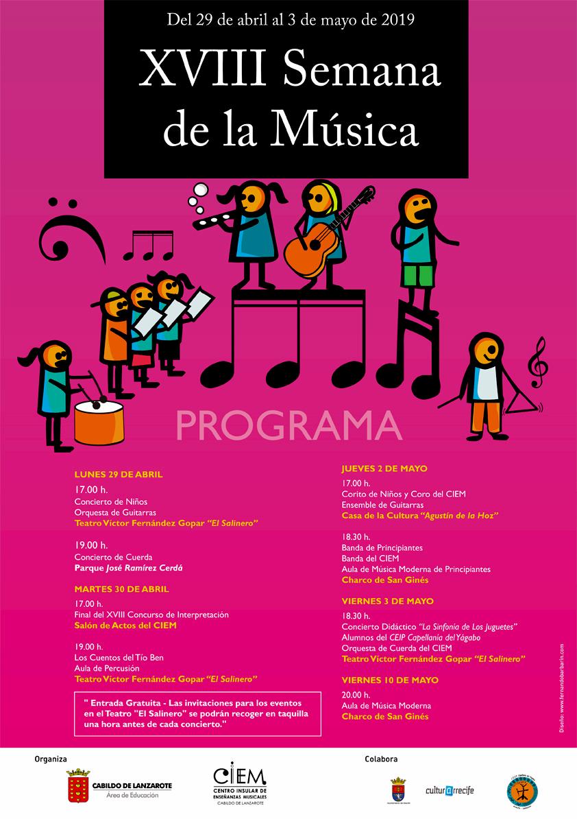 El Centro Insular de Enseñanzas Musicales (CIEM) dependiente del Área de Educación del Cabildo de Lanzarote celebrará la XVIII Semana de la Música con una extensa y variada programación de conciertos entre los próximos días 29 de abril y 3 de mayo.