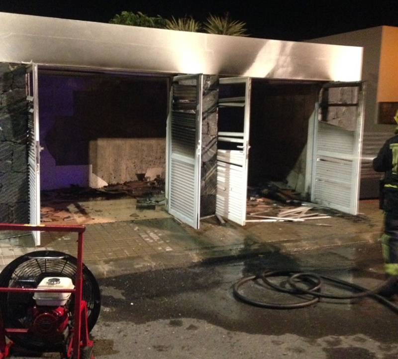Los efectivos del Consorcio de Seguridad y Emergencias acudían hacia las 21:30 horas a sofocar un incendio producido al saltar unas chispas en un cuarto de residuos ubicado en la calle Alemania de Playa Blanca.